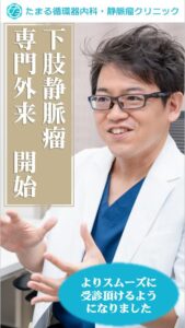 「受診したいがどこを受診すればいいかわからない」「この程度で受診しても大丈夫かな」など、これまで静脈瘤で受診するか迷われていた患者さんの第一歩になれば幸いです。