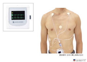 ホルター心電図検査は、小型の心電計を装着し、24時間または数日間にわたって日常生活の中で心電図を記録する検査です。病院内での短時間の心電図では捉えにくい、一時的な不整脈や心筋の異常を発見するのに役立ちます。検査中も普段どおりの生活ができるため、仕事や家事をしながらでも記録が可能です。動悸やめまい、胸の違和感がある方、心疾患が疑われる方に適した検査です。装置は軽量で負担が少なく、安全に受けられます。